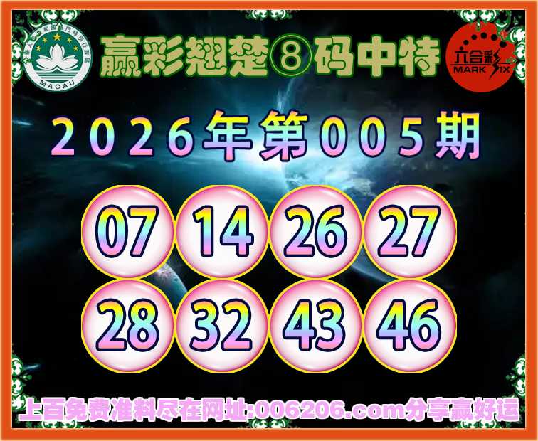 005期:《赢彩翘楚》 💄⑧码中特💄开:43准公开见证