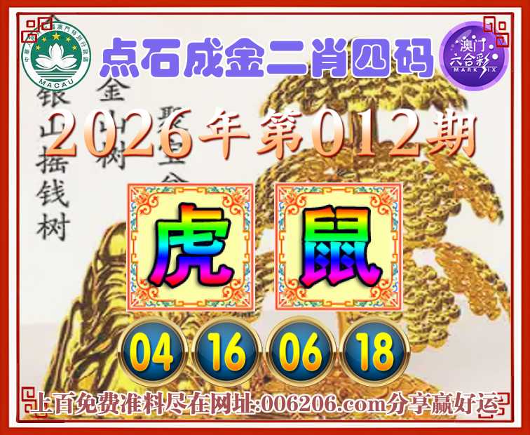 012期:《点石成金》  ♣️二肖四码 ♣️【虎鼠】【04.16.06.18】开:羊11