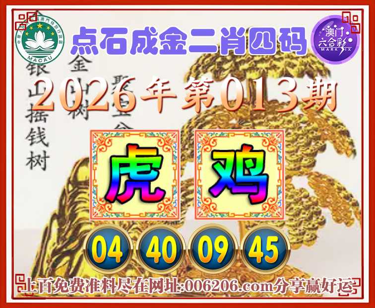 013期:《点石成金》  ♣️二肖四码 ♣️【虎鸡】【04.40.09.45】开:蛇01