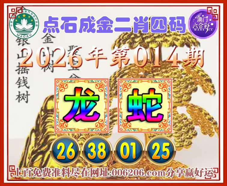 014期:《点石成金》  ♣️二肖四码 ♣️【蛇】【26.38.01.25】开:龙26准公开见证