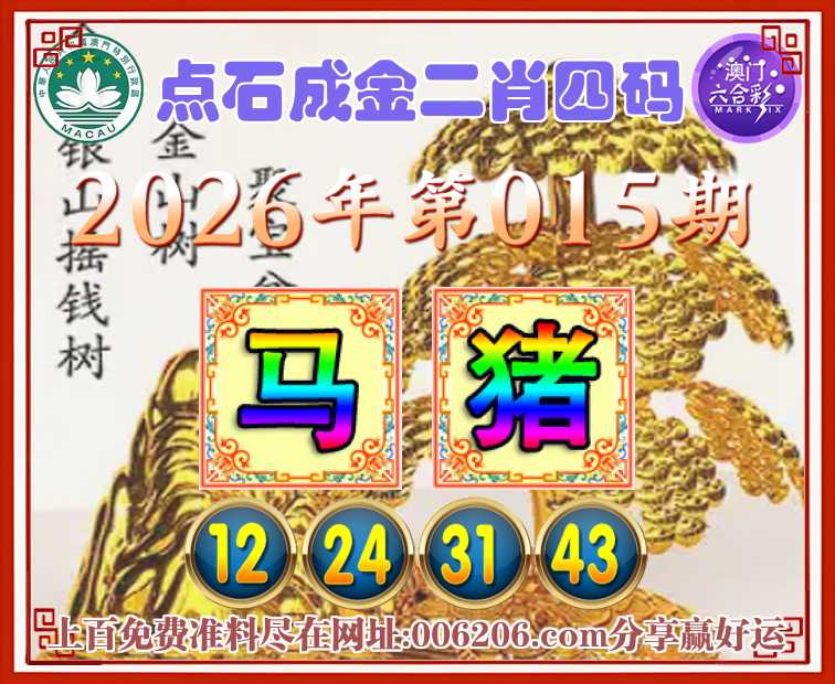 015期:《点石成金》  ♣️二肖四码 ♣️【马】【12.24.31.43】开:猪31准公开见证