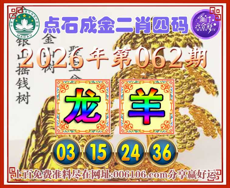 062期:《点石成金》  ♣️二肖四码 ♣️【龙羊】【03.15.24.36】开:00准