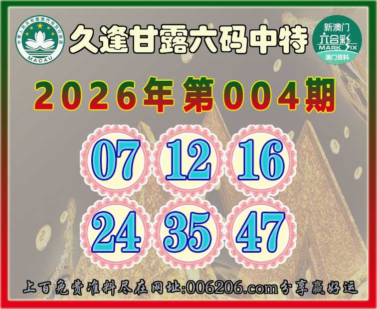 004期:【久逢甘露】 🚵‍♀️六码中特🚵‍♀️【07.12.16.24.35.47】开:45