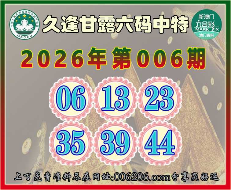 006期:【久逢甘露】 🚵‍♀️六码中特🚵‍♀️【06.13.23.35.39.44】开:13准公开见证