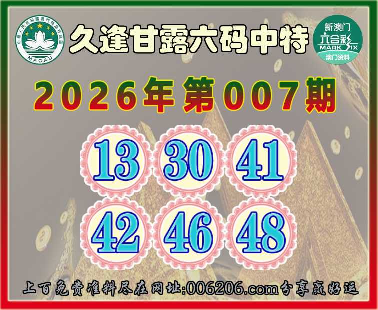 007期:【久逢甘露】 🚵‍♀️六码中特🚵‍♀️【13.30.41.42.46.48】开:41准公开见证