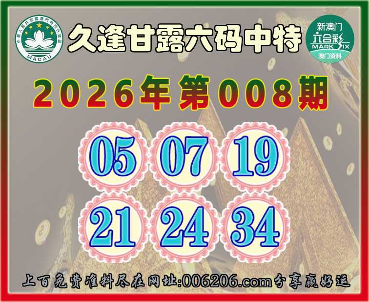 008期:【久逢甘露】 🚵‍♀️六码中特🚵‍♀️【05.07.19.21.24.34】开:21准公开见证