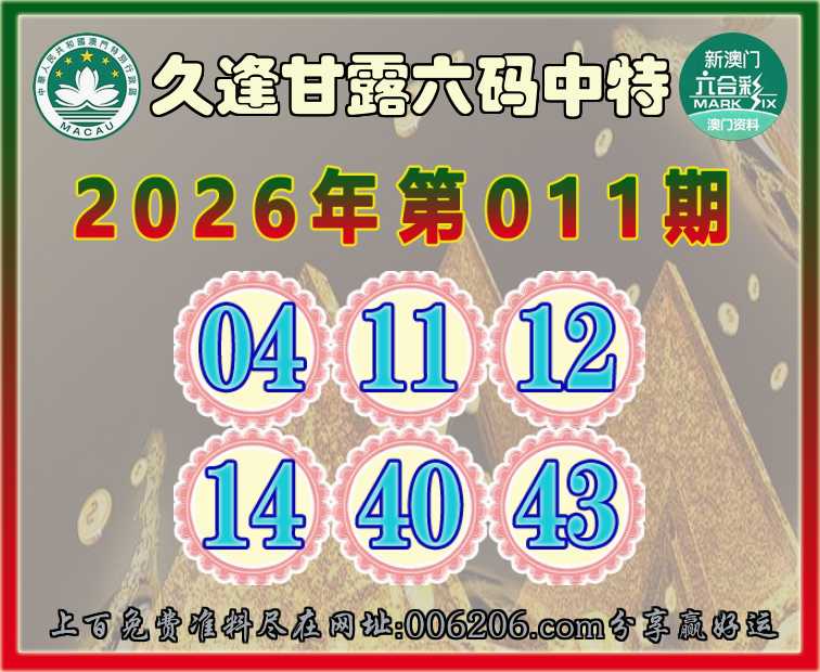 011期:【久逢甘露】 🚵‍♀️六码中特🚵‍♀️【04.11.12.14.40.43】开:11准公开见证