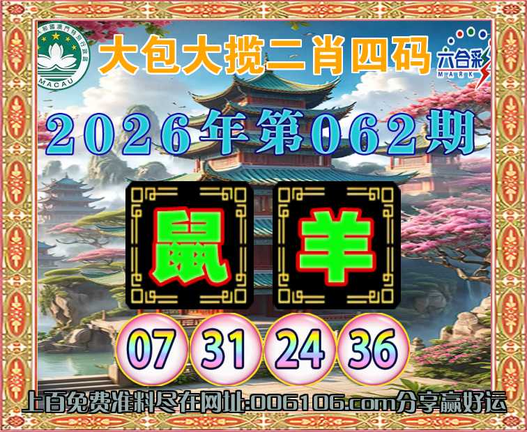 062期:〖大包大揽〗 🍖二肖四码🍖【鼠羊】【07.31.24.36】开:00准