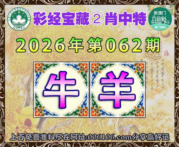062期: 🥉『彩经宝藏』 🥉②肖中特🥉【牛.羊】开:00准