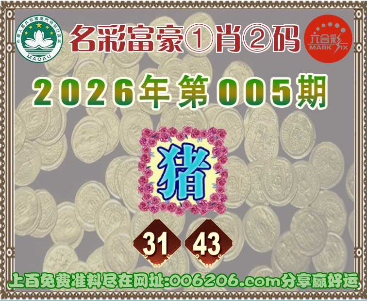 005期:〖名彩富豪〗 ♣️①肖②码♣️【】【31.43】开:猪43准公开见证