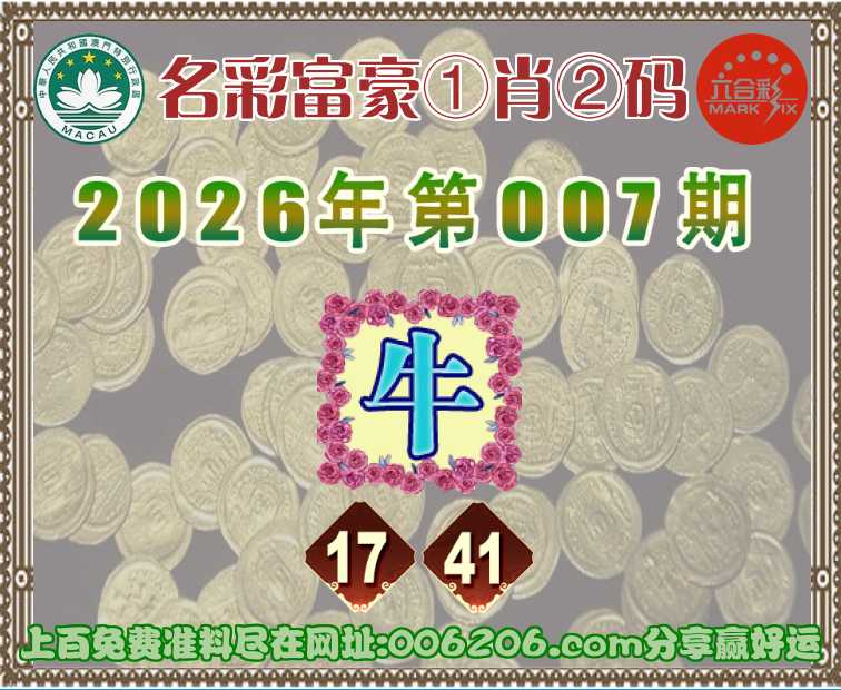 007期:〖名彩富豪〗 ♣️①肖②码♣️【】【17.41】开:牛41准公开见证