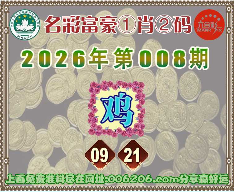 008期:〖名彩富豪〗 ♣️①肖②码♣️【】【09.21】开:鸡21准公开见证