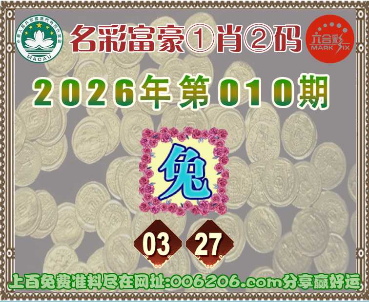 010期:〖名彩富豪〗 ♣️①肖②码♣️【】【03.27】开:兔27准公开见证