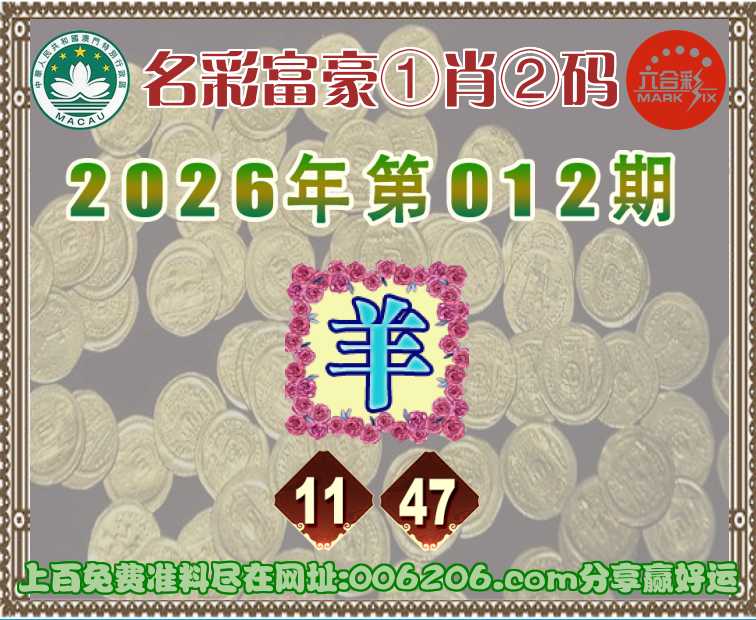 012期:〖名彩富豪〗 ♣️①肖②码♣️【】【11.47】开:羊11准公开见证